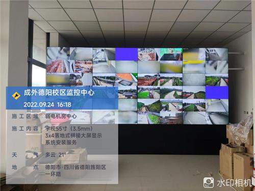 成外德阳校区宇视55寸3X4机架式后维护监控系统安装调试完成